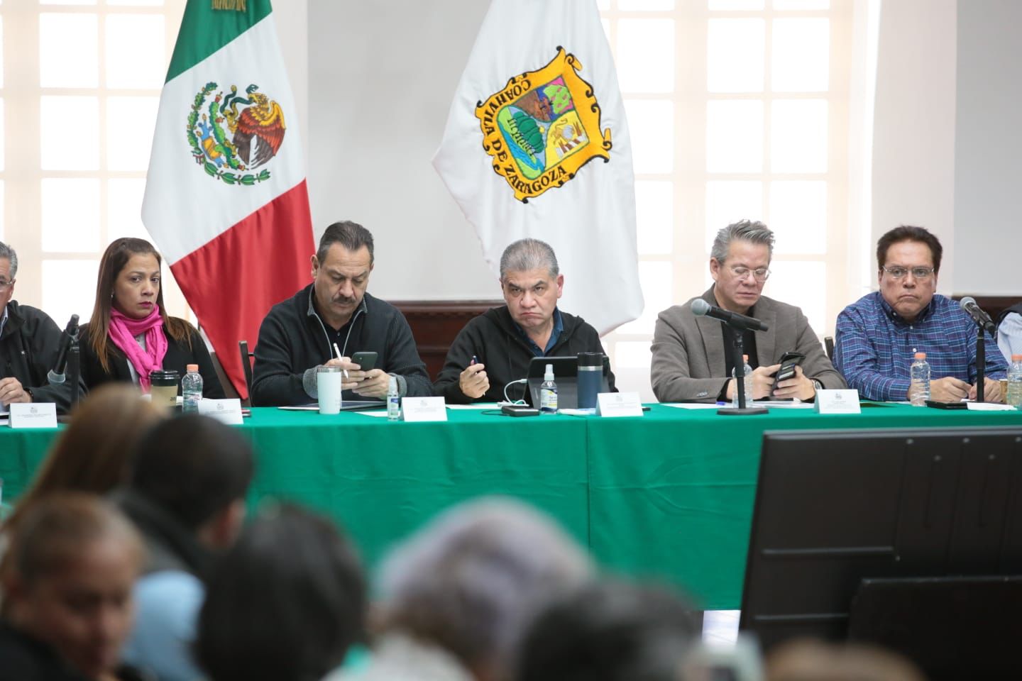 En esta Reunión Plenaria acompañaron al Gobernador, Fernando Donato de las Fuentes Hernández, Secretario de Gobierno de Coahuila; Sonia Villarreal Pérez, Secretaria de Seguridad Pública; Luis Efrén Ríos Vega, magistrado presidente de la Comisión de Derechos Humanos del Poder Judicial del Estado; y Gerardo Márquez Guevara, Fiscal General del Estado.