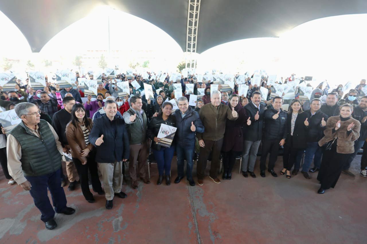 El gobernador Miguel Ángel Riquelme refirió que este es un esfuerzo compartido entre los distintos órdenes de gobierno, para ofrecer certidumbre y regularizar el patrimonio de las familias saltillenses.