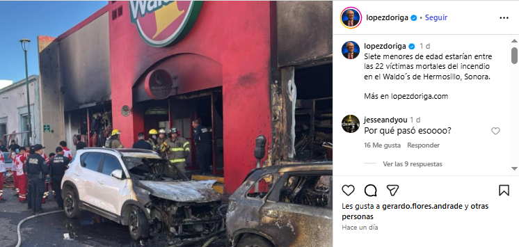 “Lejos de mi tierra, pero con mi corazón en Hermosillo. Que la fuerza y la fe abracen a las familias que hoy sufren por este lamentable suceso”, señaló el cantante en su cuenta de Instagram.