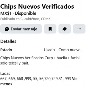 Oferta de chips celulares supuestamente registrados. Captura de pantalla / Facebook