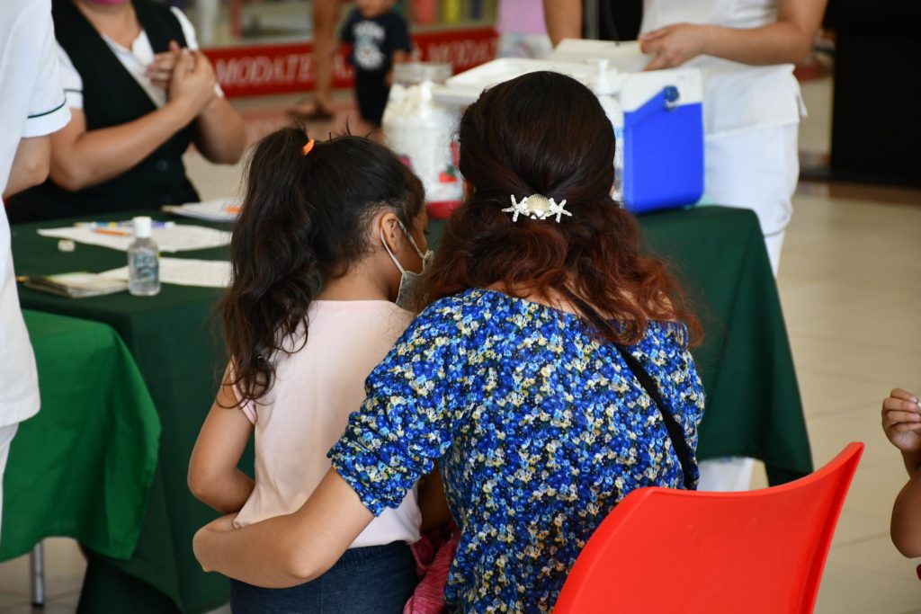 Del mismo modo se llevó a cabo el proceso de vacunación de Sarampión-Rubeola y Sarampión-Rubeola-Paperas para niños de uno a nueve años. A las 9 de la mañana personal de la clínica uno del Seguro Social instaló el punto de vacunación al interior de la plaza comercial.
